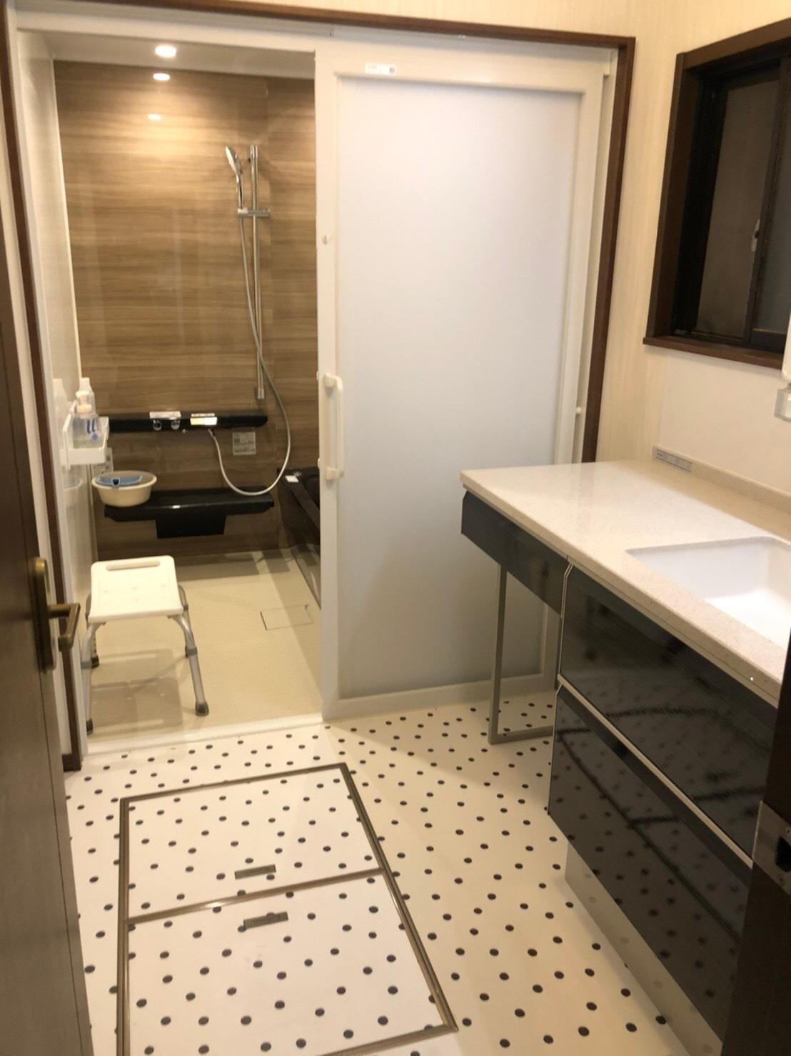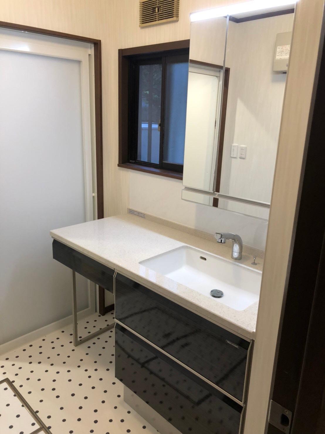 浴室の改修工事を行いました! 洗面台も広くできたのは、洗濯機を置いていたスペースも使えるようになったためです! 洗濯機はなんと見えないように、洗濯機置き場を作ってしまいました!もちろん排水などの工事も行いました!