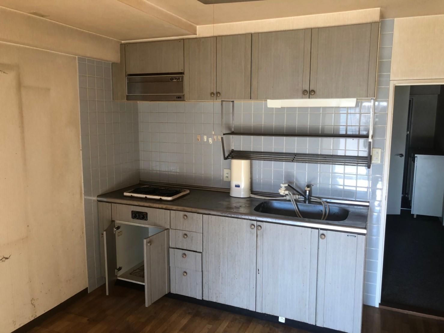 築30年の鉄筋コンクリート、地上8階建ての1室のキッチン交換や畳からタイルカーペットへの交換、洗面化粧台の交換や温水器の交換など行い見違えるようになりました!
