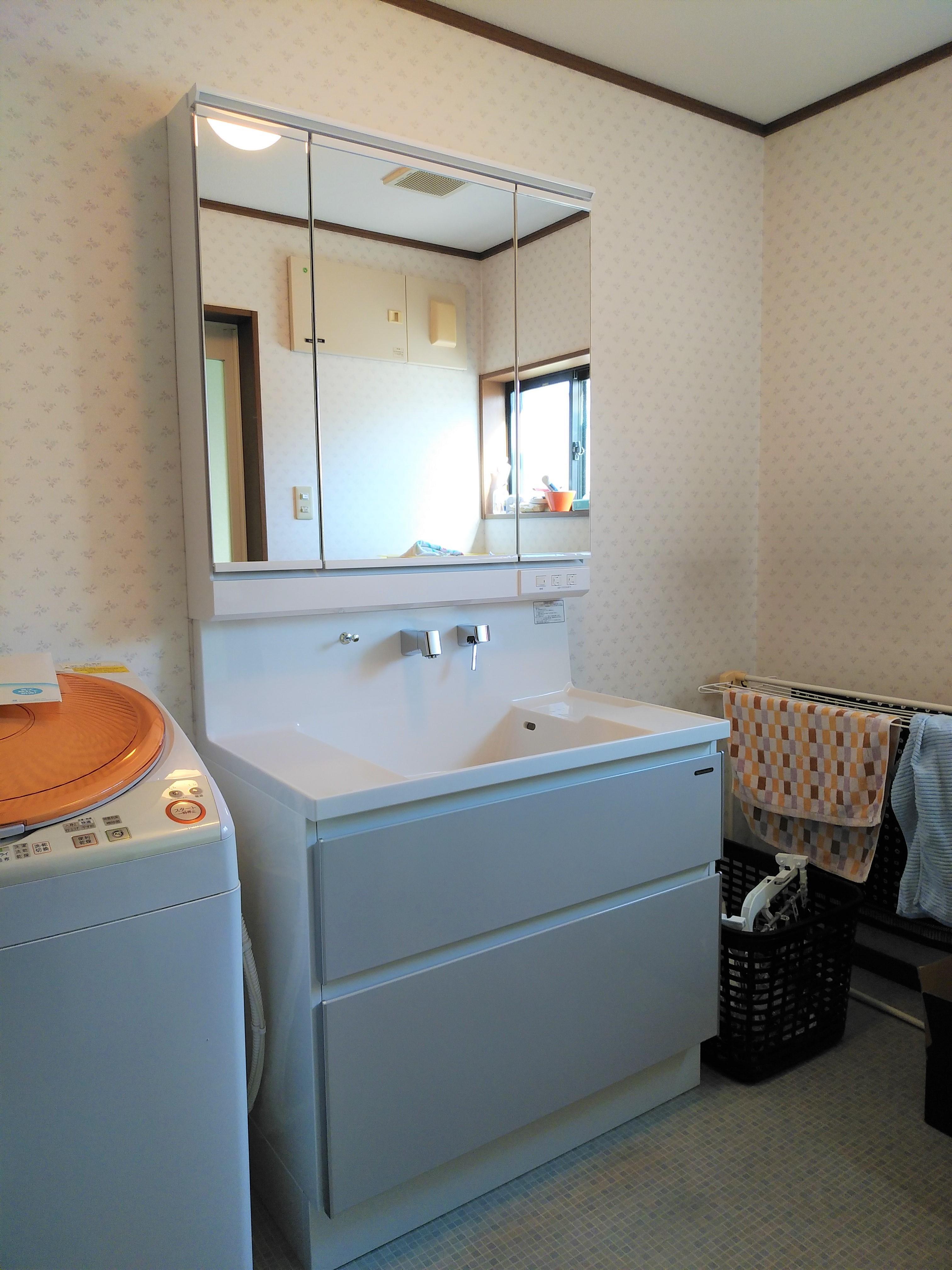 洗面化粧台の交換を行いました!見た目もすっきりな洗面台!収納力もばっちりです。