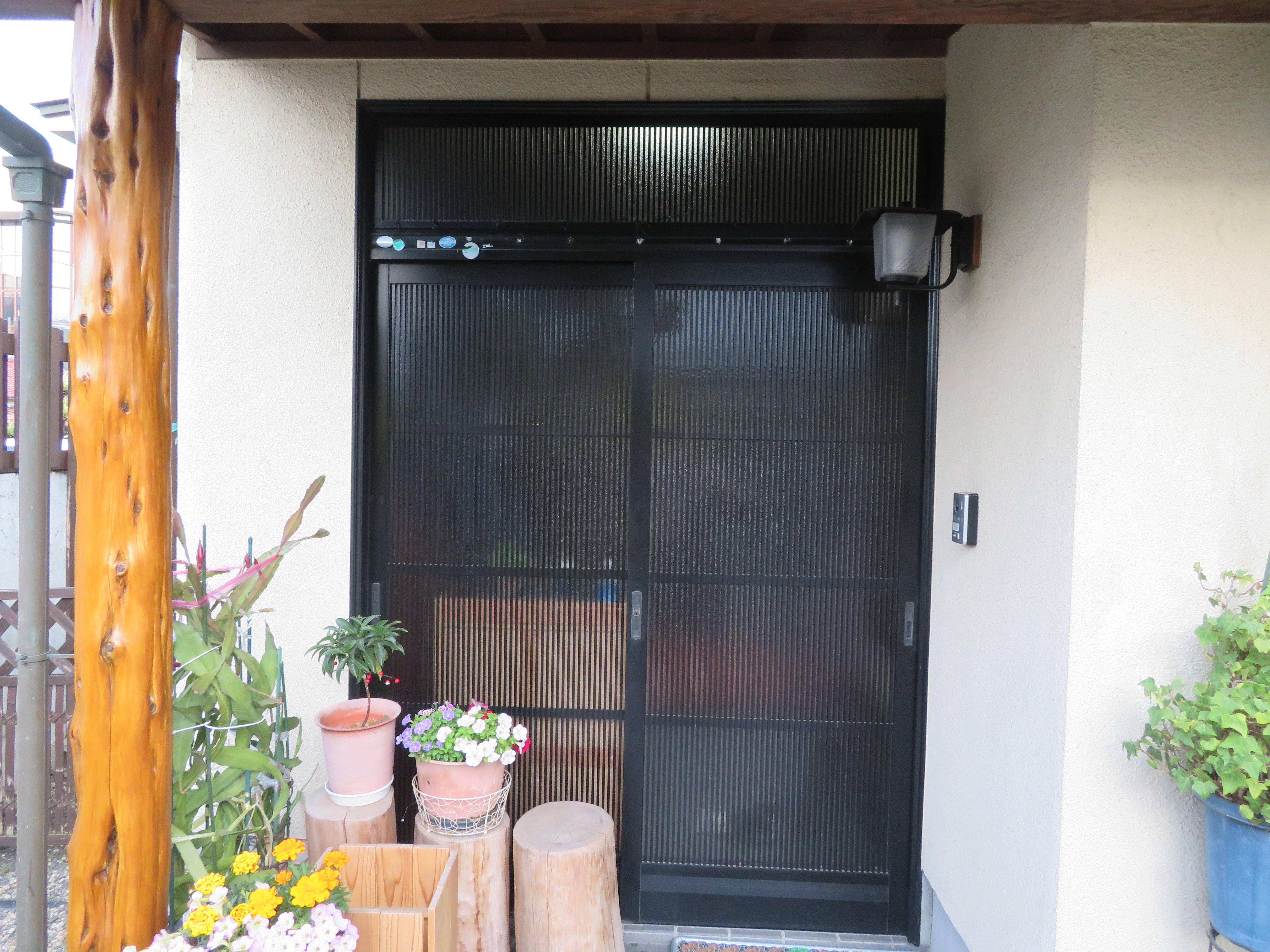 玄関引戸と玄関照明の交換工事を行いました。 防犯性も高まり、お家の雰囲気に温かみが生まれました。