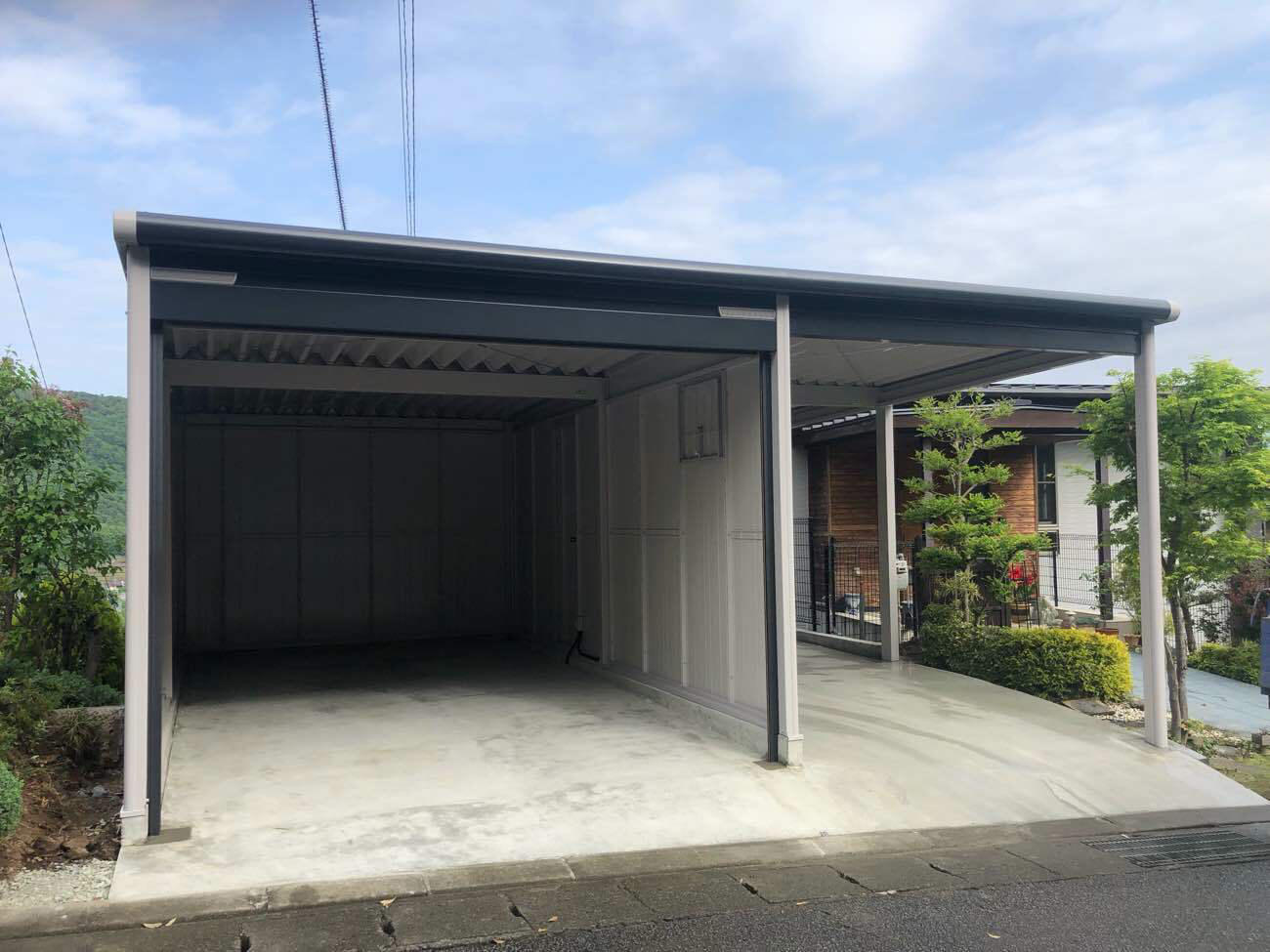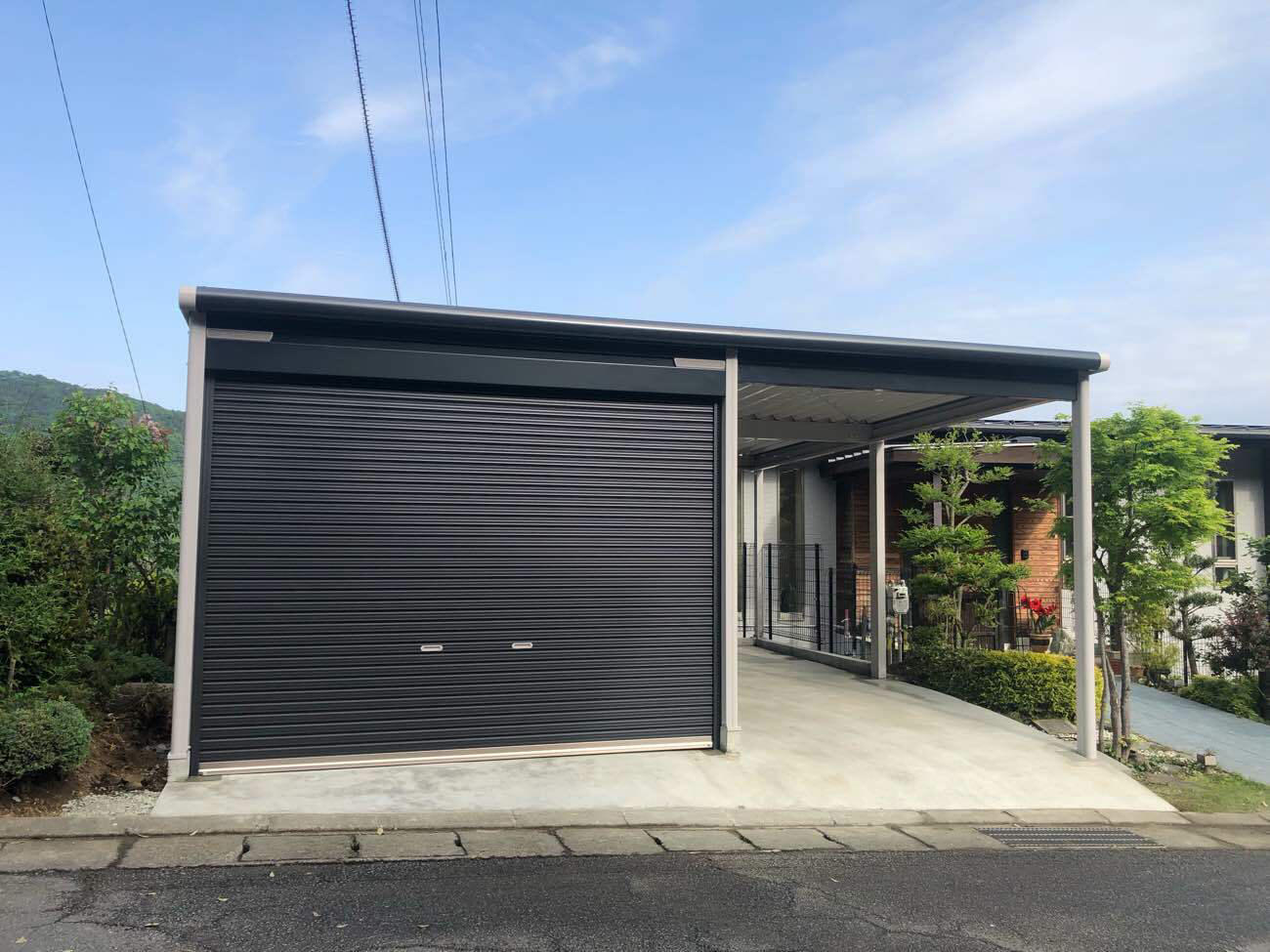 カーポート新設工事を行いました! こちらのカーポートは、耐久性・耐食性に優れいつまでも美しい外観を保てます! 使い勝手の良い便利なオプションも充実しているためお客様の使用目的に合います♪ 電動シャッター付きでモダン住宅の景観にもとてもよく合うカラーとなっています。