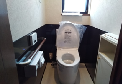 1・2階のトイレ改修工事を行いました。 毎日使うところだからこそ、清潔を保ちやすく、お手入れ簡単なものがオススメです! 手すりもつけて安全に使用できます!