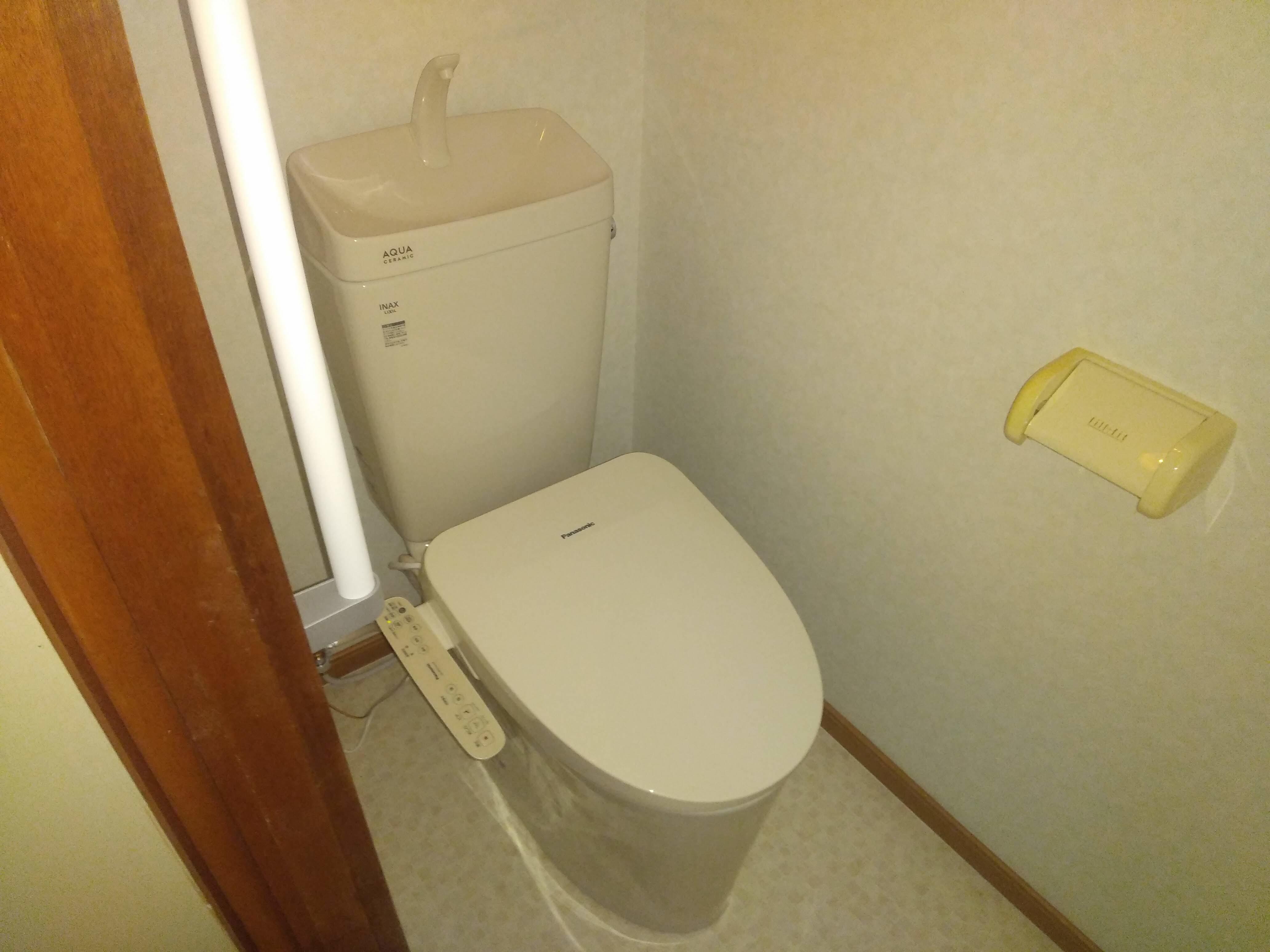 和式トイレを洋式トイレにリフォームしました。 ウォシュレット付きの便座に手すりも設置しました。 座ったり・立ったりが楽にできるようになりました。