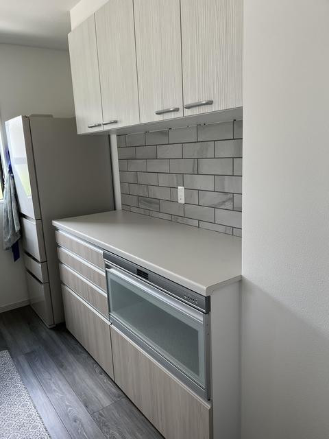 お子さまがこれから成長することを考えたときによくある事故を考えました。収納キャビネットで指を挟んでしまったり、炊飯器やレンジで遊んでしまうことなどがある為、収納力と安心安全に使える商品でのプランニングをさせていただきました。 ソフトモーションレールがある為、勢いよく閉めても減速して静かに閉まること、家電を収納したまま使用できるため思わぬ事故防止になる家電収納(蒸気排出ユニット)がついているキャビネットをおすすめさせていただきました。