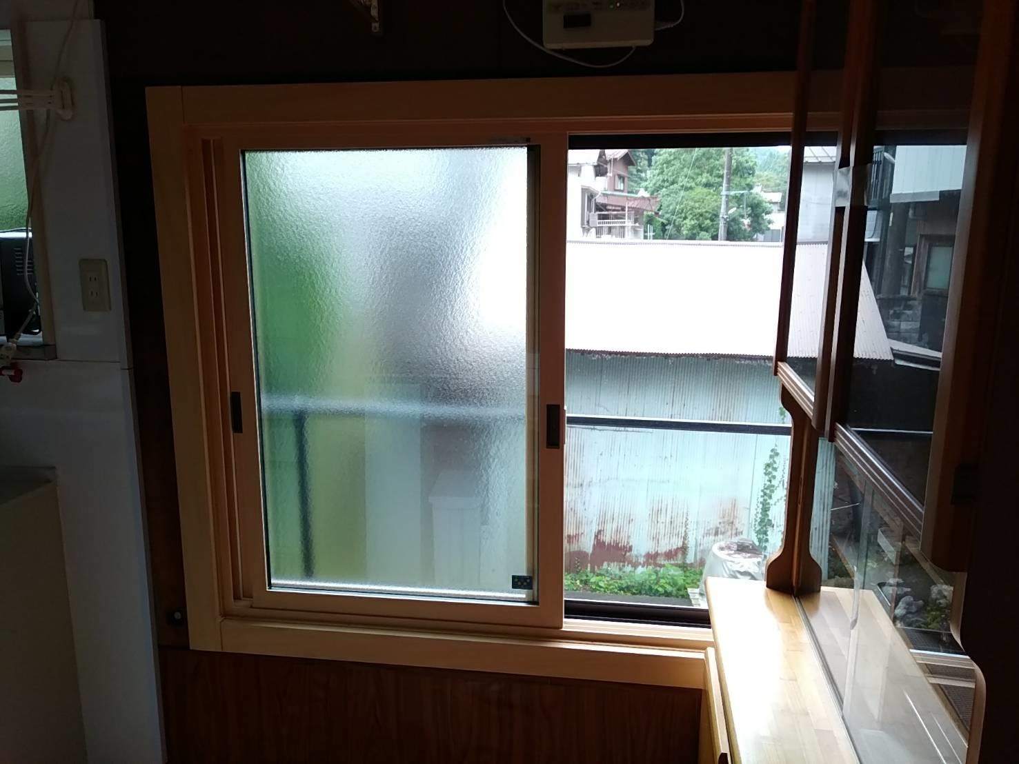 窓辺の寒さが気になるとお施主様。 複層ガラスの窓への交換を行いました。1つは内窓を取付・もう1つはカバー工法で外窓交換をしました。 断熱窓に交換するだけで、お部屋の室温も変わっていきます。プライバシーも配慮して型ガラスにしました。