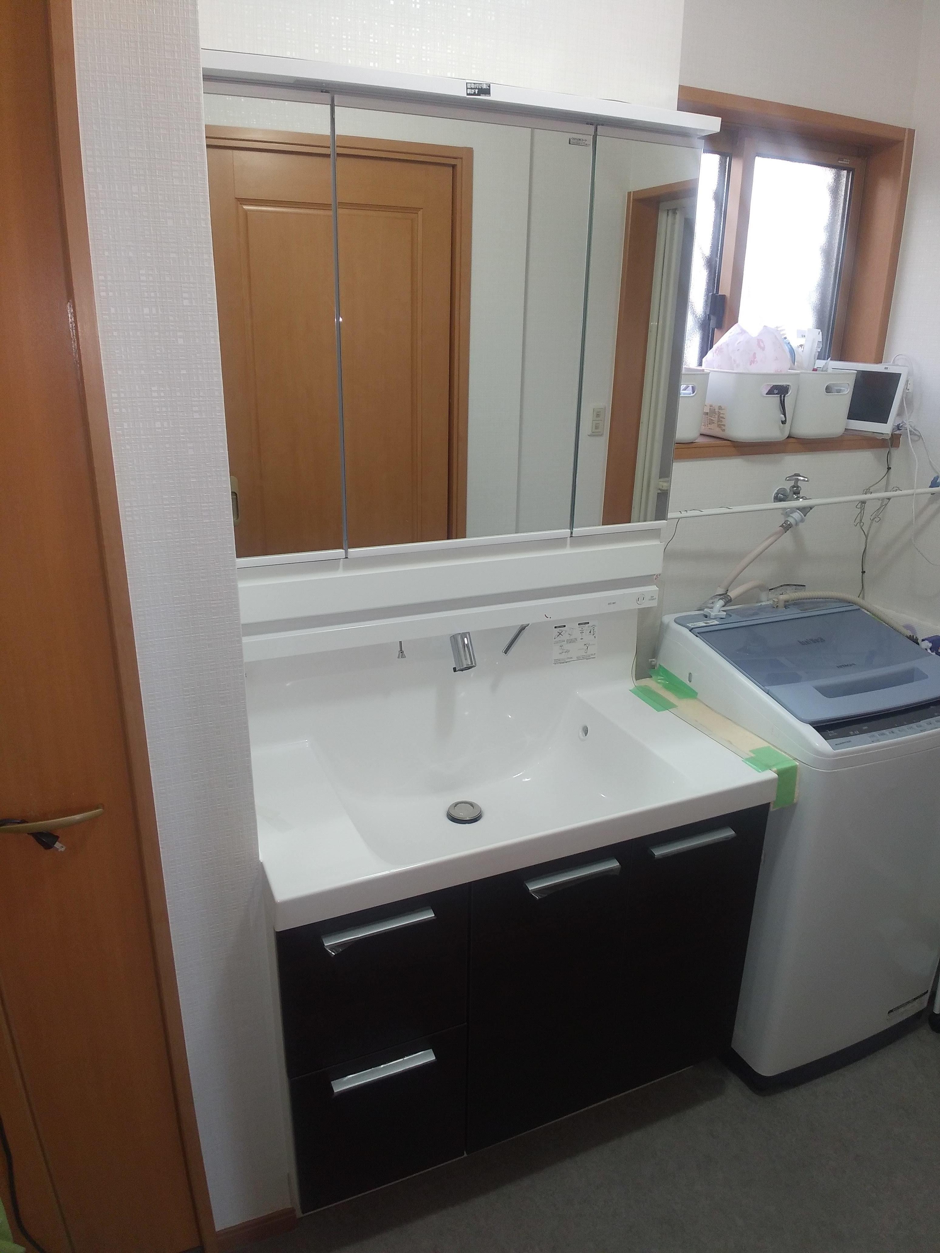 脱衣室のリフォーム工事を行いました。 洗面化粧台はLIXIL L.Cに♪♪♪ クロスの貼替・床のクッションフロアの貼替をしてピカピカになりました。 水栓も自動になり手をかざすだけなので、とても快適で節水にもなります!