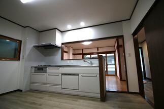 L型キッチンをI型対面キッチンにしました。家族と会話をしながら料理もできるように♪