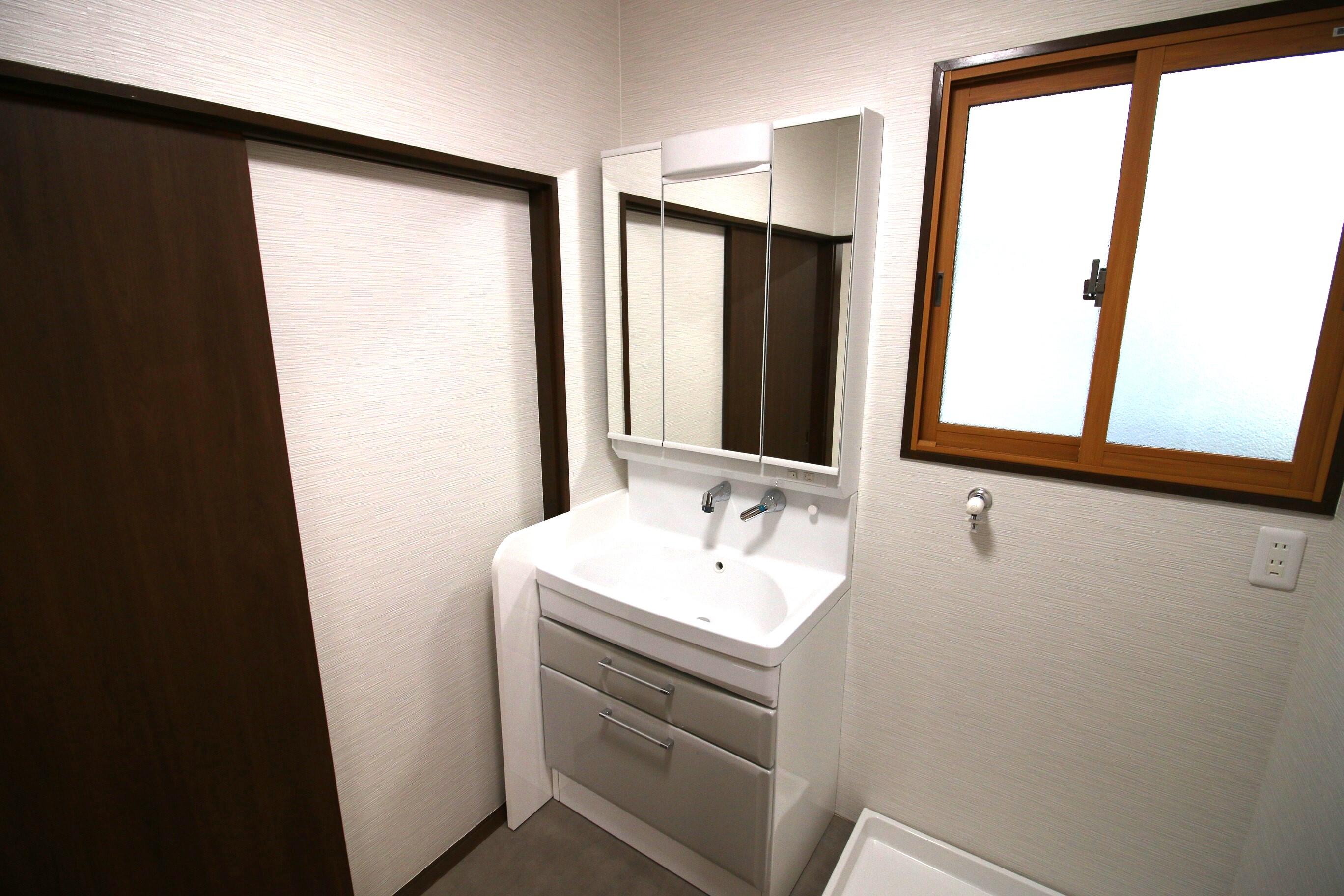 洗面化粧台を交換しました。引出しタイプで使いやすくミラーを開けるとたっぷり収納できるスペースがあります!