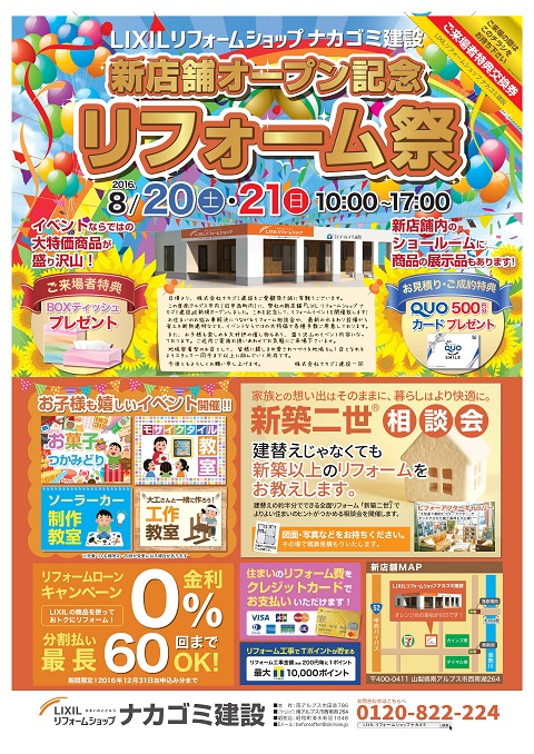 新店舗開店記念祭といたしまして、下記日程にてリフォームイベントを開催いたします。