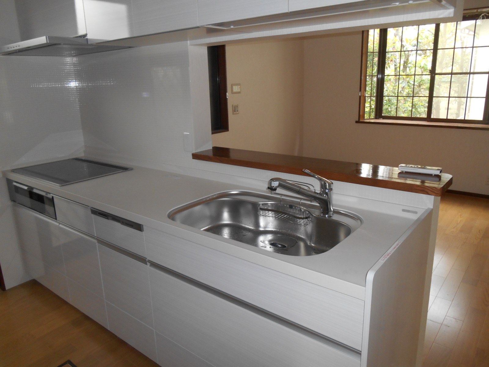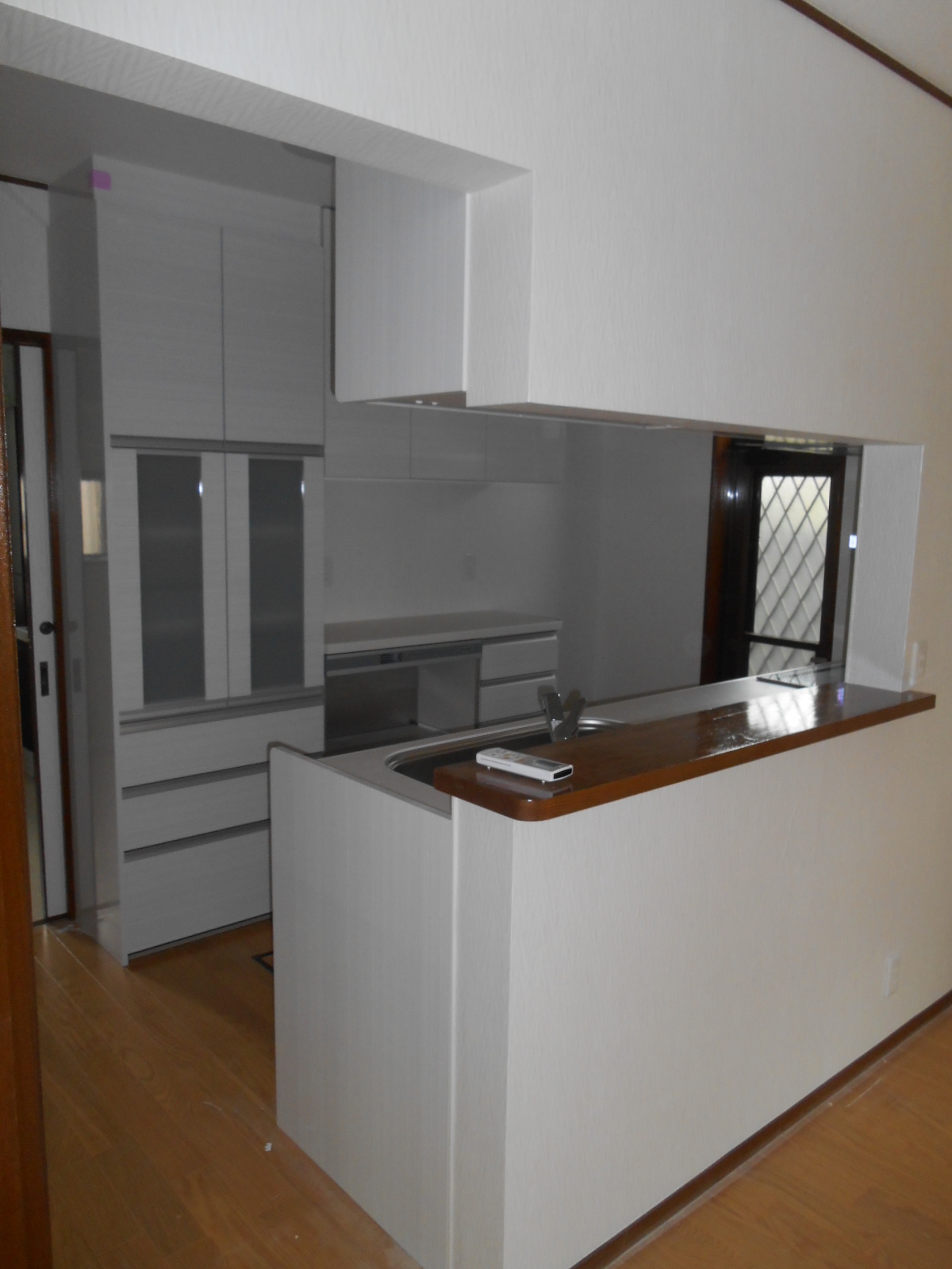 キッチンからダイニングまでホワイトで統一し、広々と明るい雰囲気のDKになりました。
