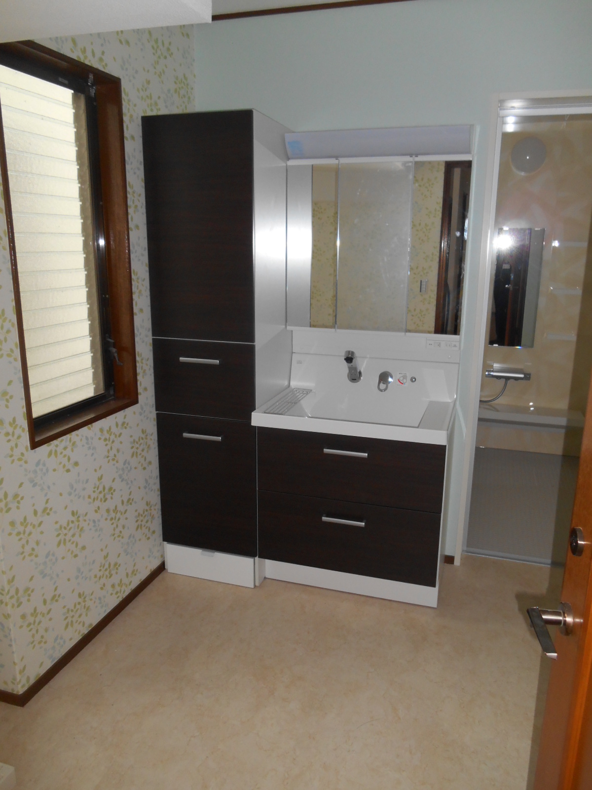 洗面ボウルも大きく、収納棚もあり広々と使いやすい空間になりました。
