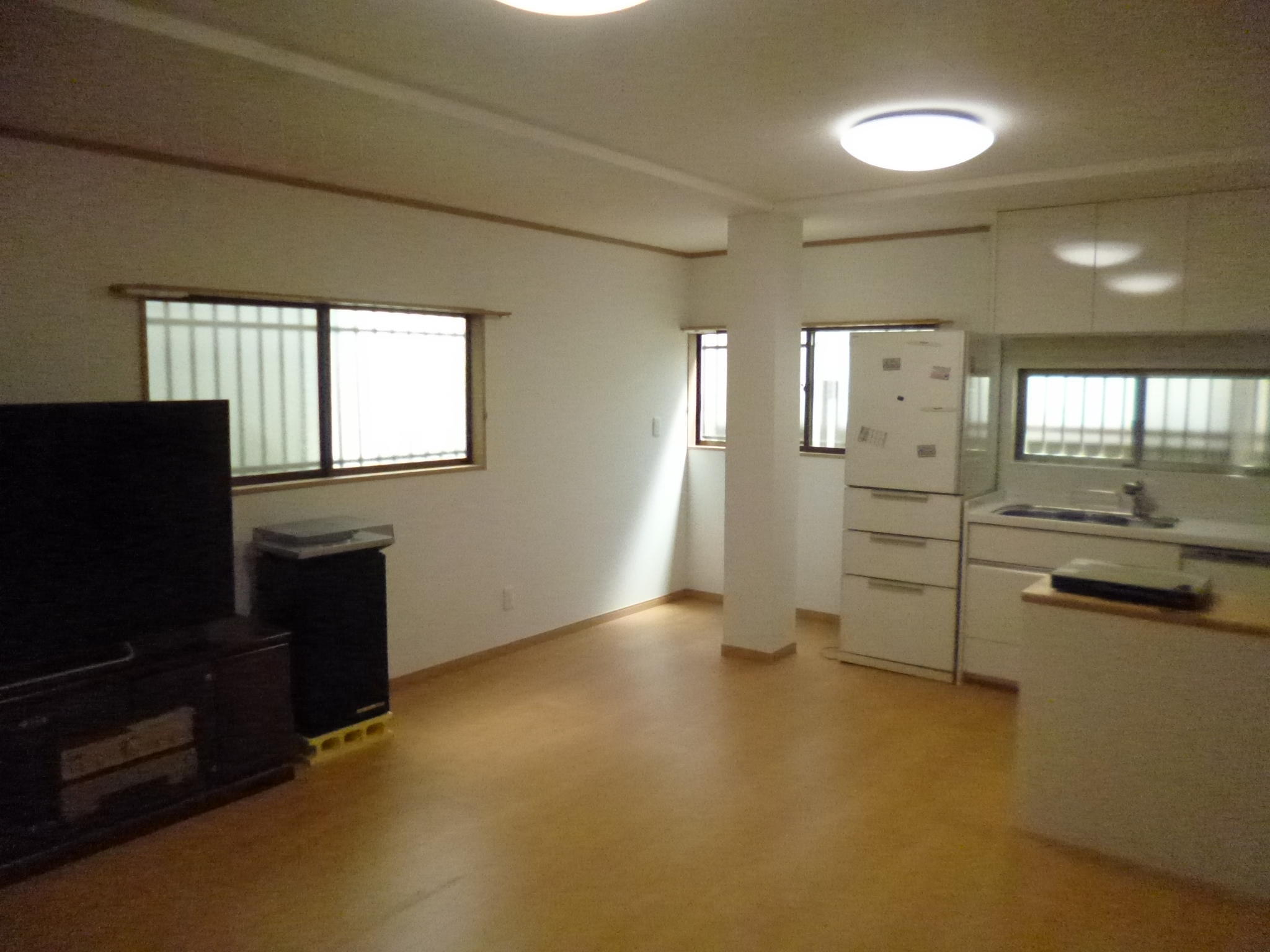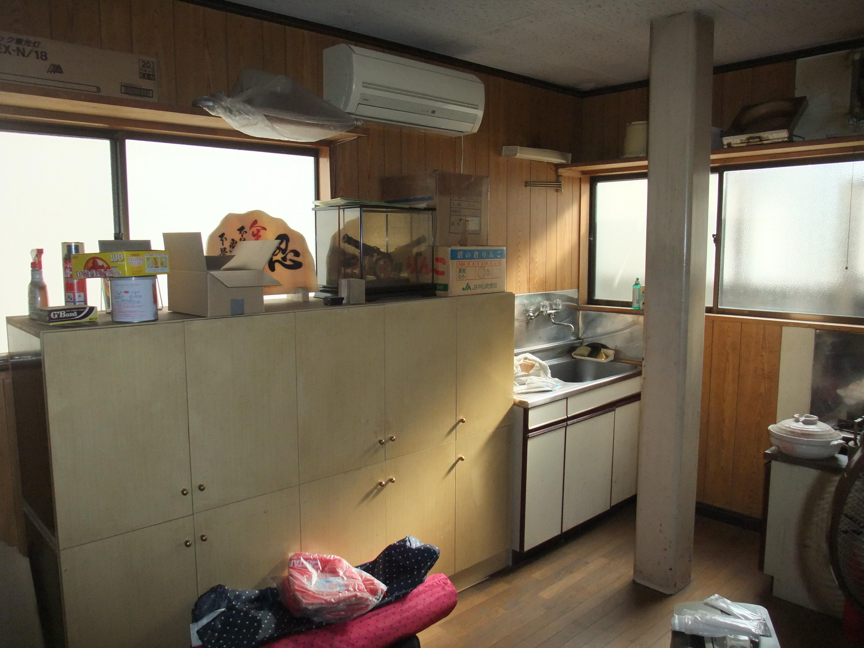 北側の角にある台所には、とても不便さを感じていらっしゃいました。 キッチンの位置を変更し、カウンターも設置しました。 むき出しになっていた鉄骨は、カバーをしクロスを貼ることで、お部屋全体に統一感がでました。