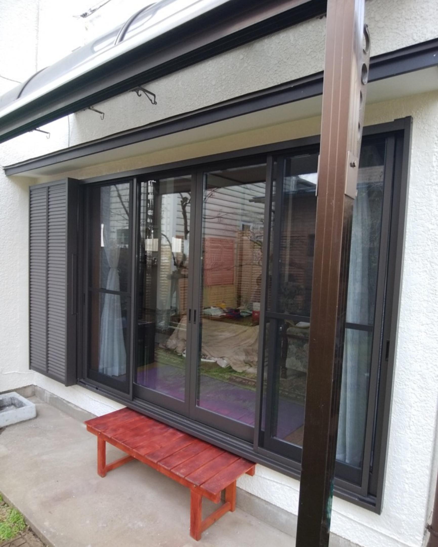 日当たりの良い居間側の窓交換をさせていただきました。 樹脂とアルミのハイブリットサッシと複層ガラスにリフォームしたことで、窓からの熱の流入・流出が軽減され冷暖房の効きが格段に変化したとのお声をいただいています。