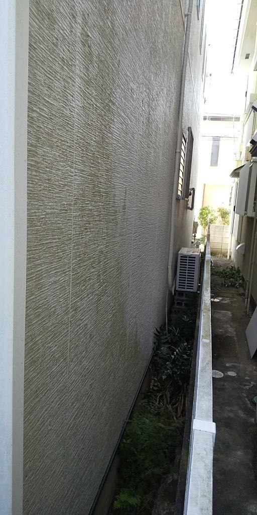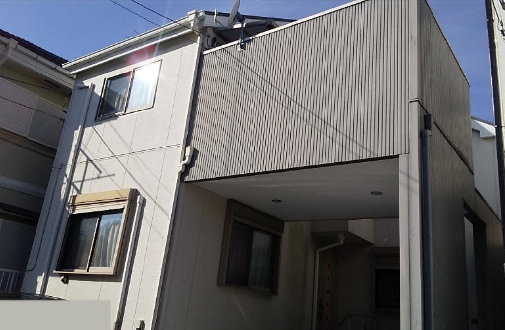 建物の形状により日陰になる部分が多いため、ほぼ全方向面にカビによる変色と劣化が見られました。 屋根も経年劣化がかなり進んでいたので、全面外装リフォームのご提案をさせていただきました。 お施主様が以前から「この色にしたい!」と思ってらした外装のデザインとなり、大変喜んでいただいております。