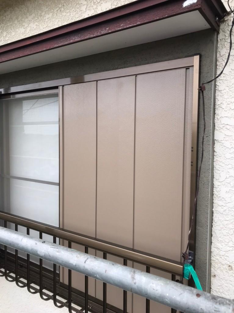 木製の雨戸から、耐久性の良いアルミ製の雨戸にリフォームしました。 台風や豪雨などの悪天候時は雨戸を閉めて、飛来物等から窓を守ることが大切ですので、雨戸リフォームは台風対策としてもご提案させていただきました。