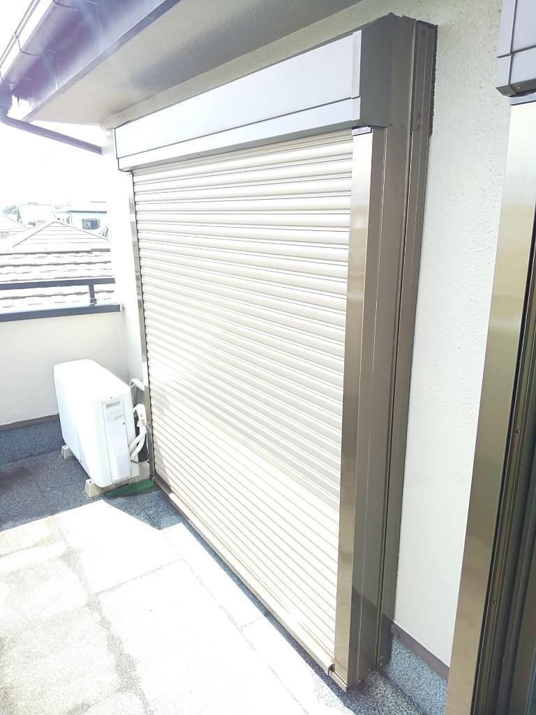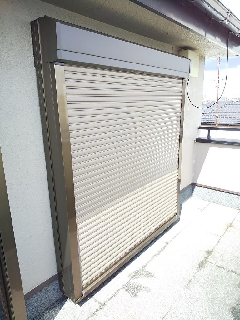 以前より、侵入盗の防犯対策として取り付けられていたリフォームシャッター。 近年は台風上陸の増加や突発的な豪雨・竜巻など自然災害の時の飛来物からも住まいを守ってくれる優れものとして需要が高まっています。 今回のお施主様も立地条件から、風の影響が受けやすい方向の掃出し窓にもしもの備えとしてシャッターを取り付けさせていただきました。