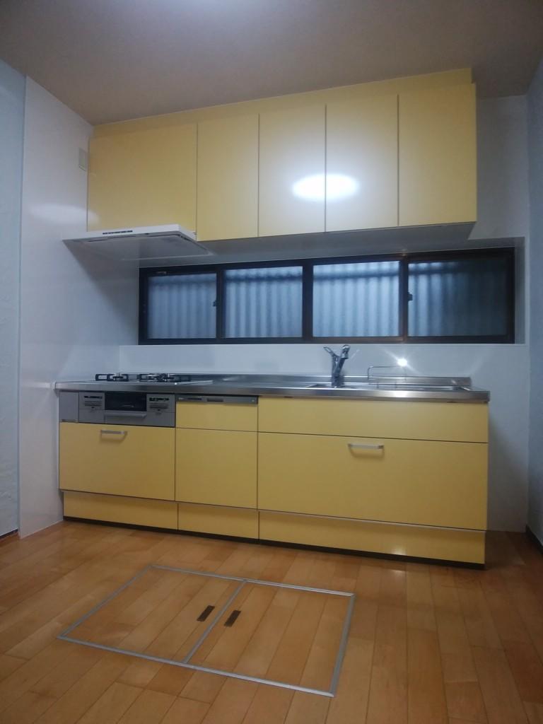 キッチンのカラーが黄色になり、色鮮やかになりました。 また、収納を扉タイプから引出しタイプにすることで、奥にあるフライパンや重たいお鍋も 簡単に取り出すことができるようになりました。