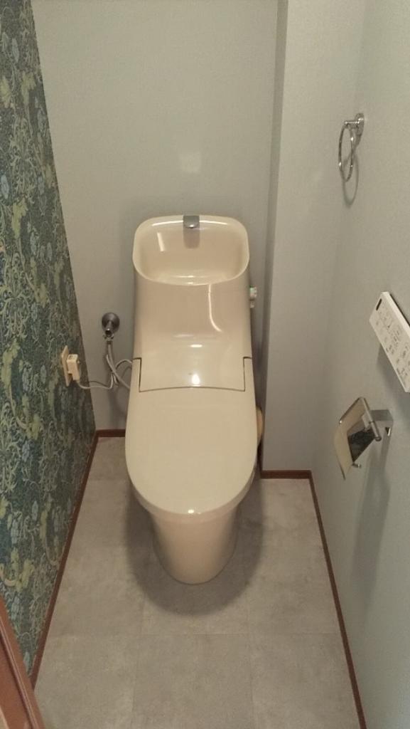 トイレクロスの汚れが気になり、トイレを快適にしたいとご依頼をいただき 一体型トイレと内装クロスのご提案をさせれ頂きました。