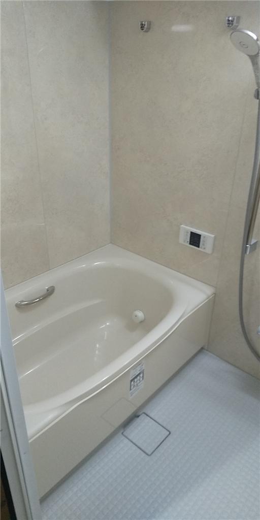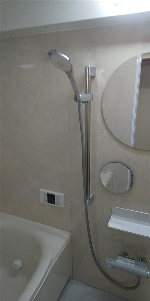 省エネ機能・掃除のしやすさを兼ね備えた新しいバスルームにリフォームしました。壁のミラーや棚はマグネットで設置しているので、好きな高さに付け替えることも自由自在です。