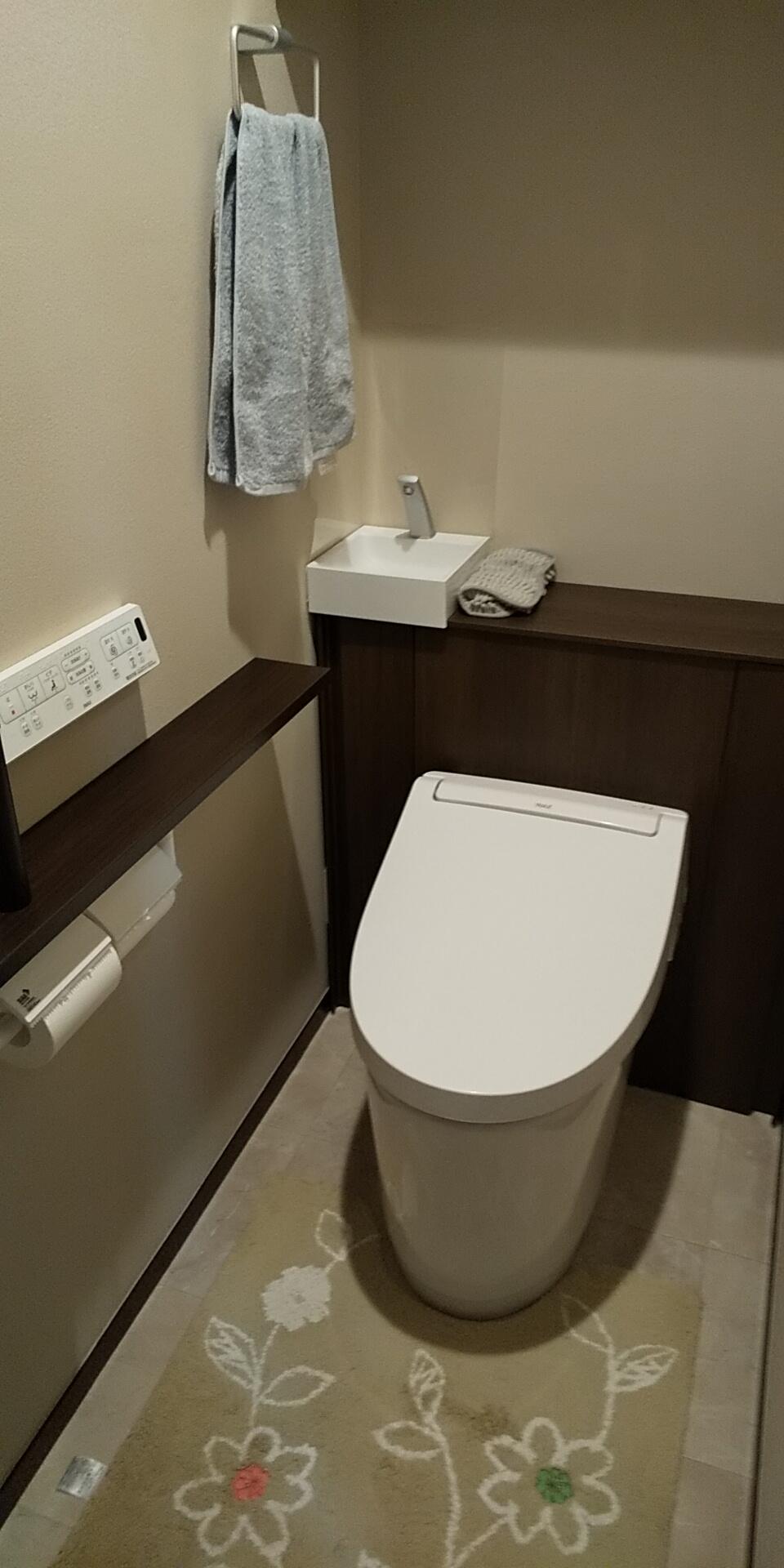 トイレのタンクを隠して見た目スッキリ。 マンションには特におすすめです。 スッキリした棚には芳香剤や小物などお好きなモノを飾っていただけます。 隠し収納にはトイレットペーパーや掃除用品などをサッと仕舞っておけるので、キレイが続きますね。