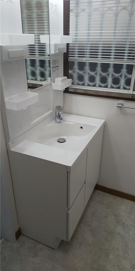 ホワイトでシンプルな化粧洗面台へ<化粧洗面台>