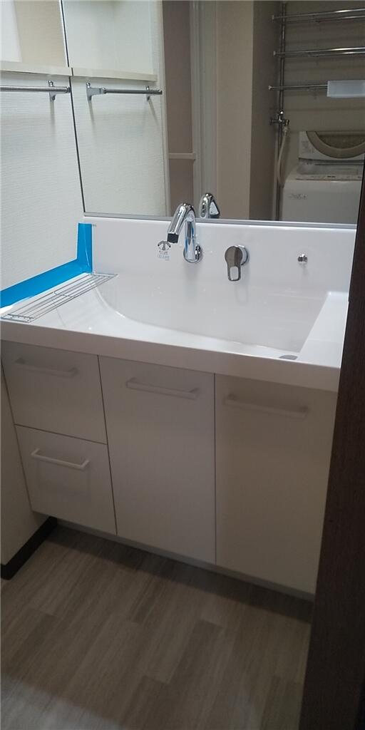 身支度や家事がしやすくなった洗面化粧台です。 洗顔やつけ置き洗いなどにも便利です。 水ハネもしにくく、お手入れも簡単です。