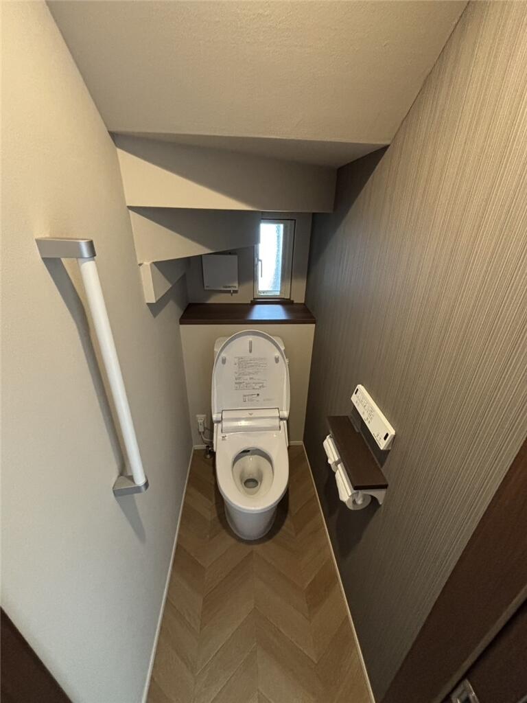 無理なく節水・節電ができるエコ機能に、毎日のお掃除がラクラクに。 壁や床を張り替えて明るく落ち着いた空間になりました。 また、手すりの位置で、立ち座りの動作が楽になります。