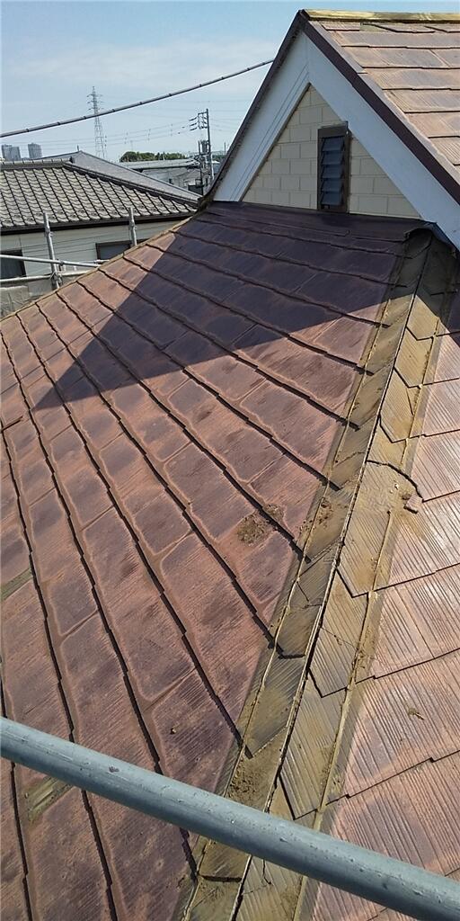 屋根の下からでは見えないからこそ定期点検が大切です。 屋根が傷んだままだと、雨漏りしたり、台風などで真っ先にダメージを受ける場所になります。 割れて塗装が剥がれていた屋根も、新築のような仕上がりになりました。