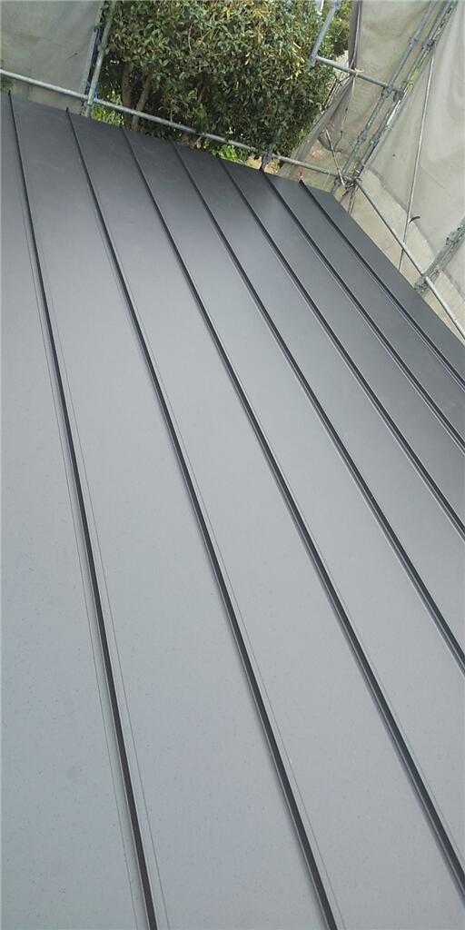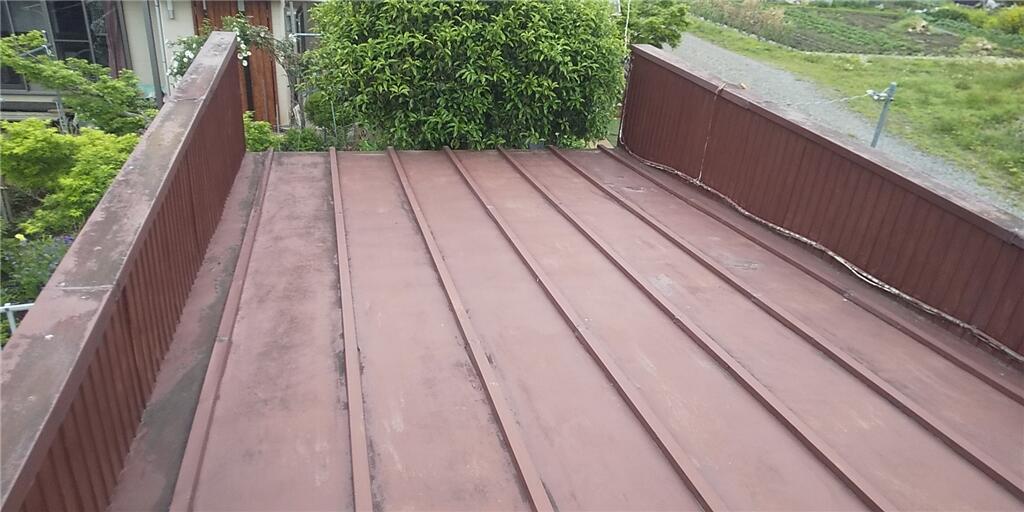 経年劣化で傷みが進んでいた屋根ですが、重ね葺きでまるごと新しくしました。 屋根材が痛んだままだと、雨水が浸入し雨漏りしたり、台風などで屋根材がめくれあがってしまう原因になります。 錆びていた屋根もつやつやな仕上がりになりました。