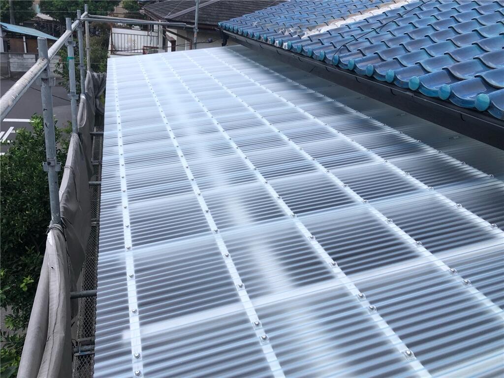 日焼けやひび割れが進むと強度が低下し、台風などで飛ばされる危険性もあります。新しく波板を張り替えしクリアカラーで透明性が高く、自然光を取り入れることができるため、光の透過も抜群です。