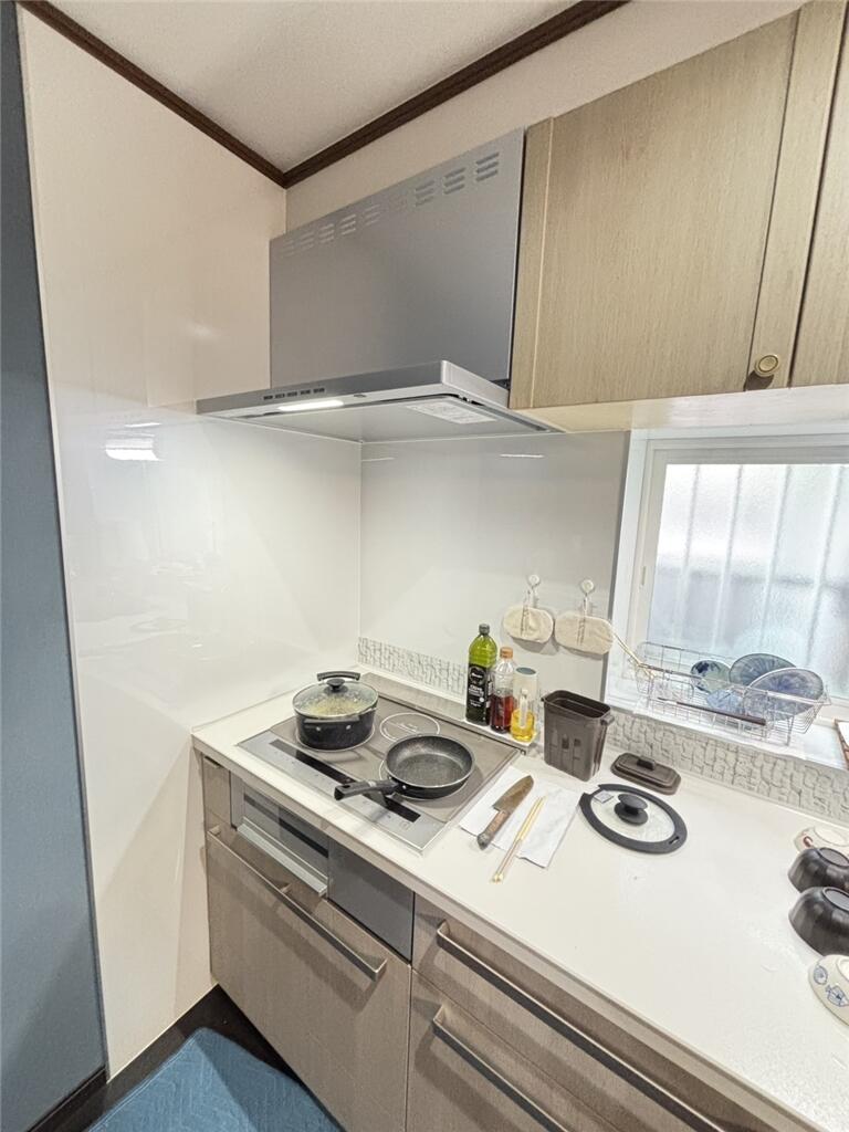 IHとレンジフードの色味をシルバーで統一され、スタイリッシュでお洒落なキッチンになりました。