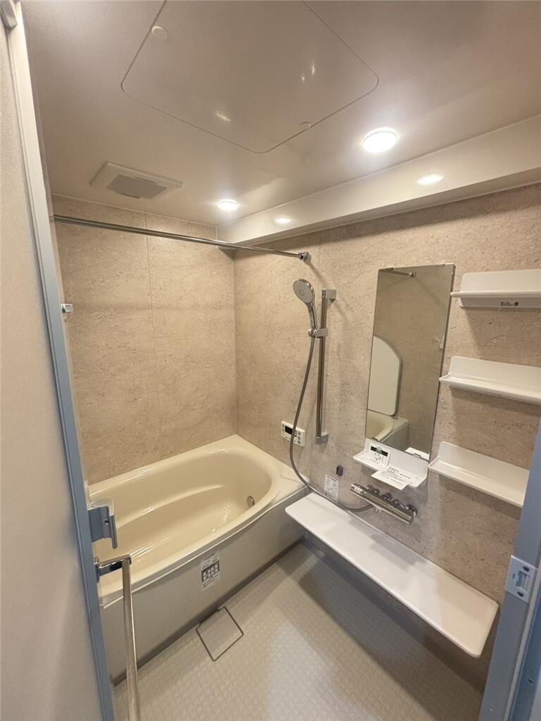 入居時よりきれいに使用していた浴室。経年劣化がみられるようになり、室内との温度差も年々感じるようになってきたので断熱性の高いバスルームに一新しました! 断熱仕様で浴室内がぽかぽか、湯温度も下がりにくくなり快適なバスタイムをお過ごしいただけます。 水栓等も新しくなり、使いやすさがUP!床も柔らかくなりお掃除しやすい理想のバスルームになりました。