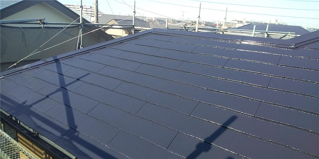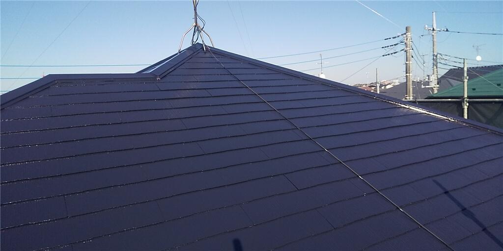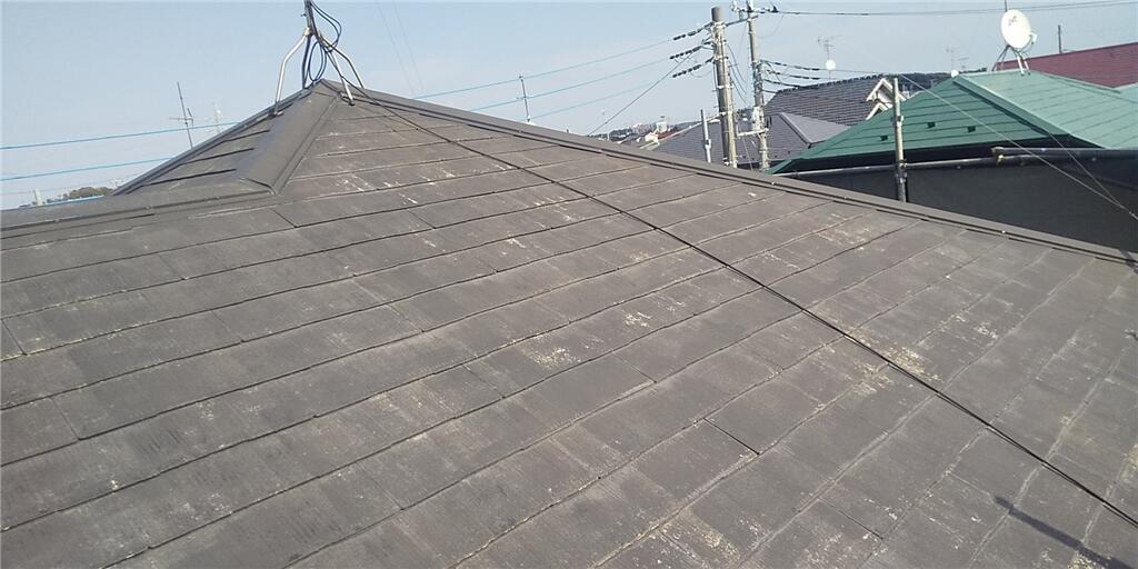 全体的に汚れや塗装の剥がれなどが目立ち、経年による劣化が多々見受けられました。このまま放置していれば、いつか雨漏りする危険は高くなります。 塗装前にしっかりと洗浄し、傷み箇所を修繕しながらハイブリットの塗料で塗装しました。防水性・美観性ともに復活です。