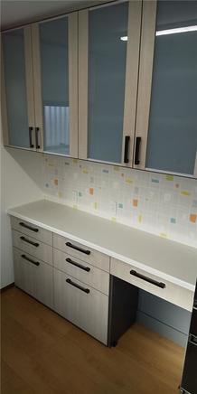 造作の洗面台と収納棚を一体型システム洗面化粧台に