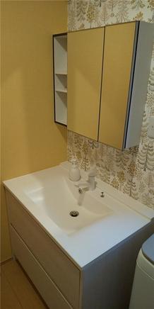 イエローを基調とした北欧調のおしゃれな洗面化粧室