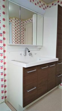 スッキリかつ収納たっぷりな洗面化粧台へリフォーム〈ピアラ〉