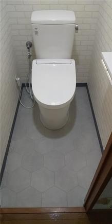 白いレンガ調のクロスで落ち着いた雰囲気のトイレ