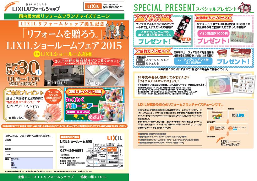 松戸市 船橋市 リフォーム LIXILショールームフェア『リフォームを贈ろう』