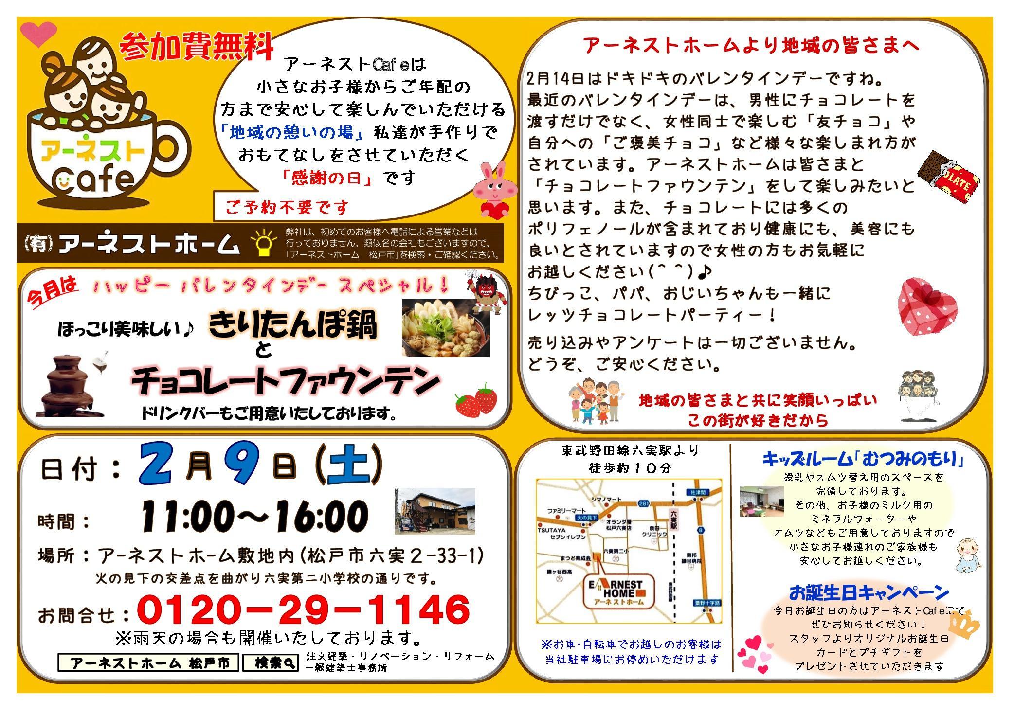 2月にお誕生日を迎えられる方はアーネストCafe開催時に