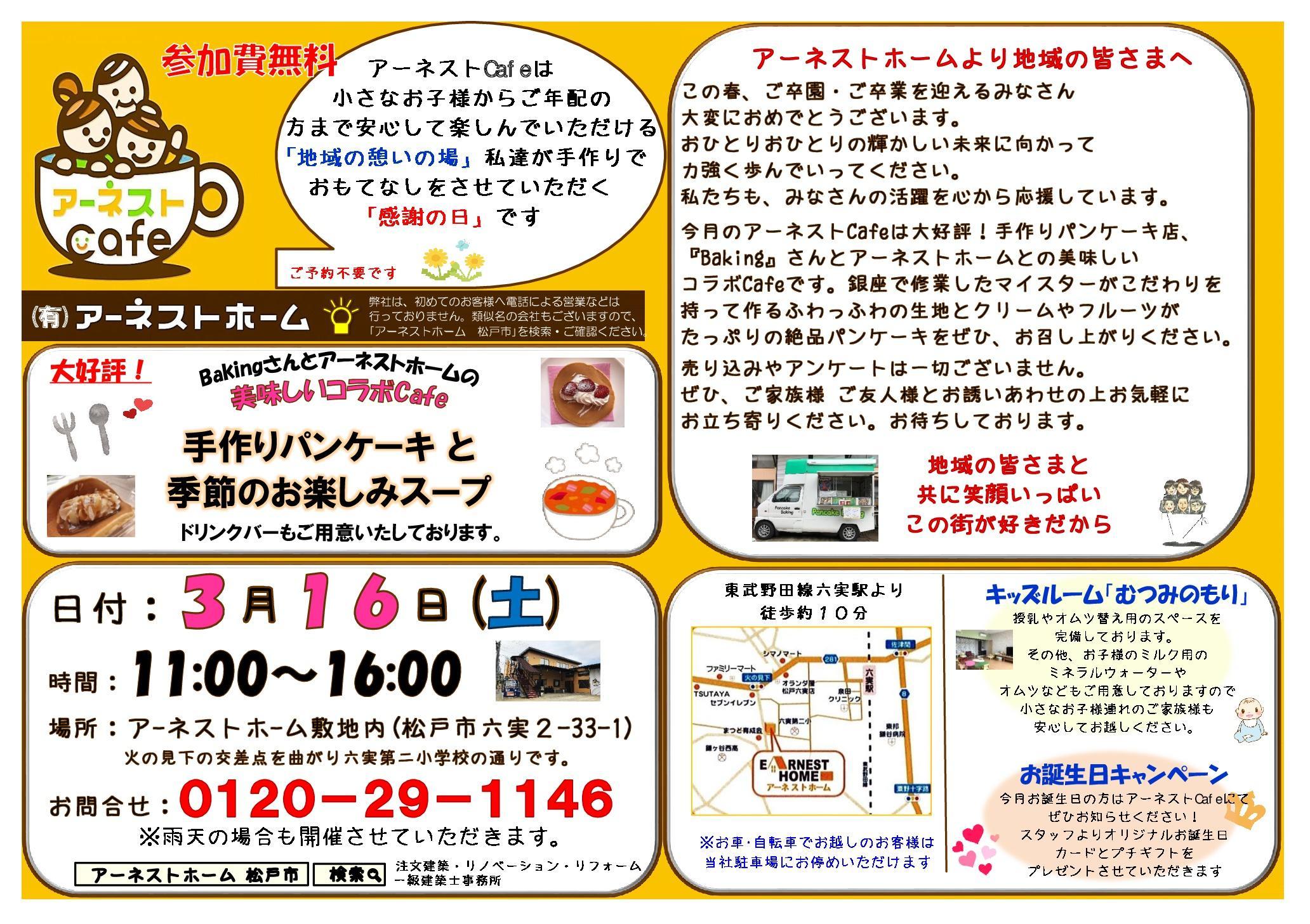 3月にお誕生日を迎えられる方はアーネストCafe開催時に
