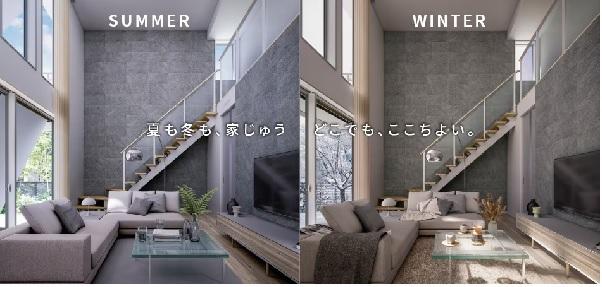 一覧へ戻る24時間・365日 きれいな空気・ここちよい温度で暮らす。エコエアfineは、高性能住宅の断熱性能を最大限引き出す、LIXILの全館換気空調システムです。