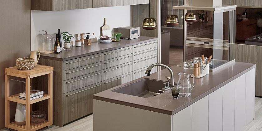 リシェルでは、セラミック・人造大理石・ステンレスの3つの素材からキッチンのワークトップをお選びいただけます。