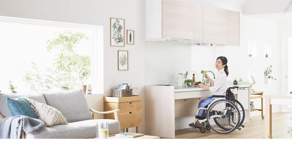 ウェルライフは、車椅子を使う方や、立ち仕事をつらいと感じる方が座った姿勢のまま、快適に料理できるよう考えられたキッチンです。