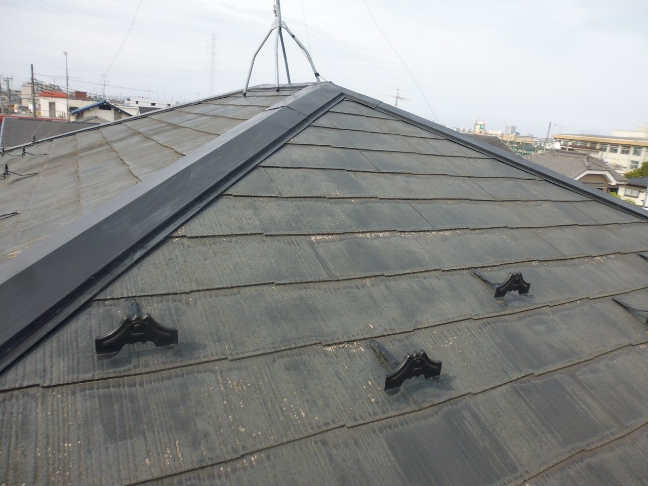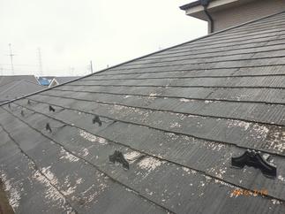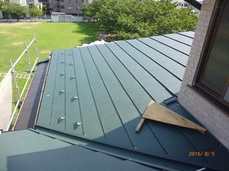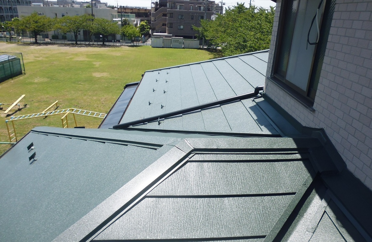 屋根材のコロニアル(スレート)の亀裂をご近所の方に指摘され、雨漏りが心配で今回の工事に至たりました。全面カバー工法で耐久性のあるガルバリウム鋼板になりました。