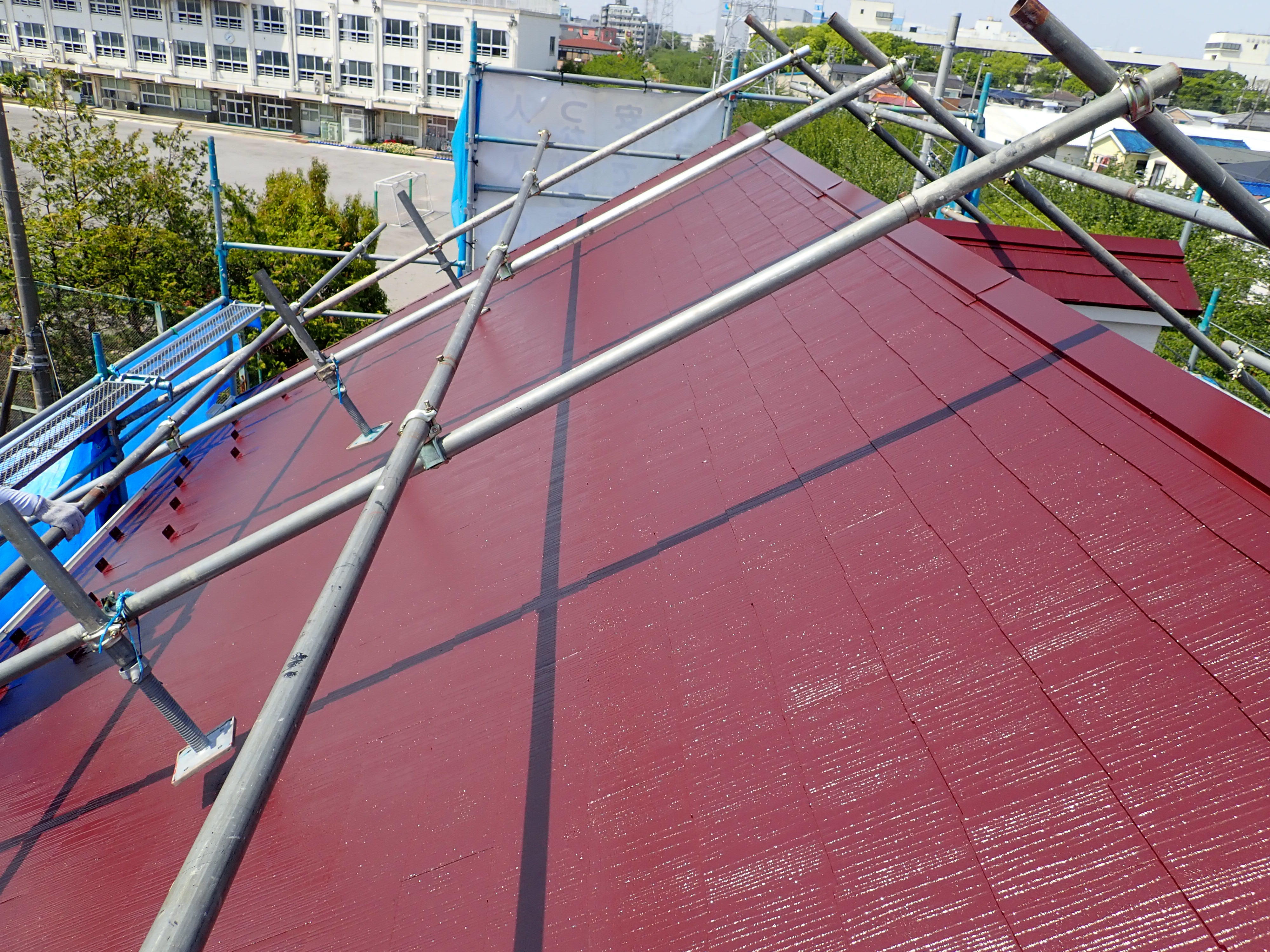 台風で屋根の一部が破損し足場が必要になる工事でしたので外壁塗装も一緒におススメさせていただきました。