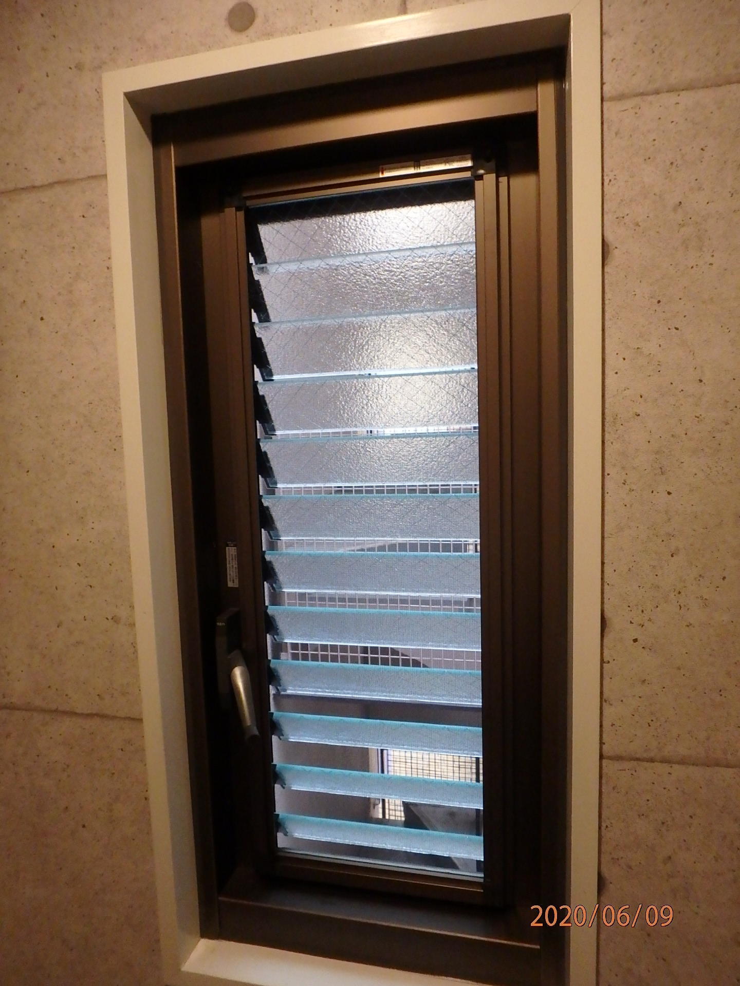 開け閉めが出来なくなり、ルーバー窓に取替えました。