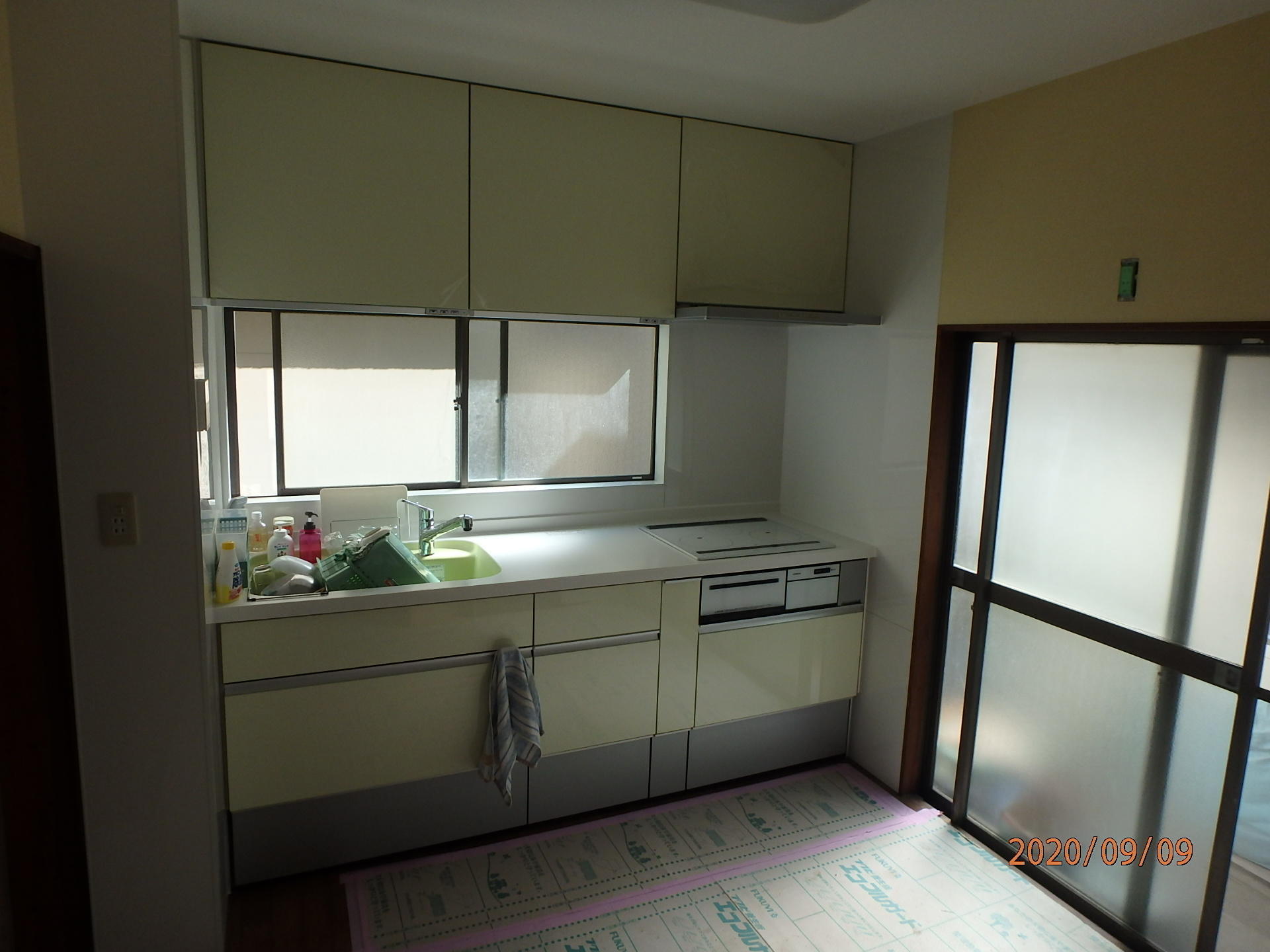 娘さんからお母さんの台所IHコンロに変えたいの、火が心配でと連絡がきました。 引出タイプの収納と吊戸棚は電気式の昇降タイプに取替えして使いやすくしました。 明るいキッチンになり喜んで頂きました。