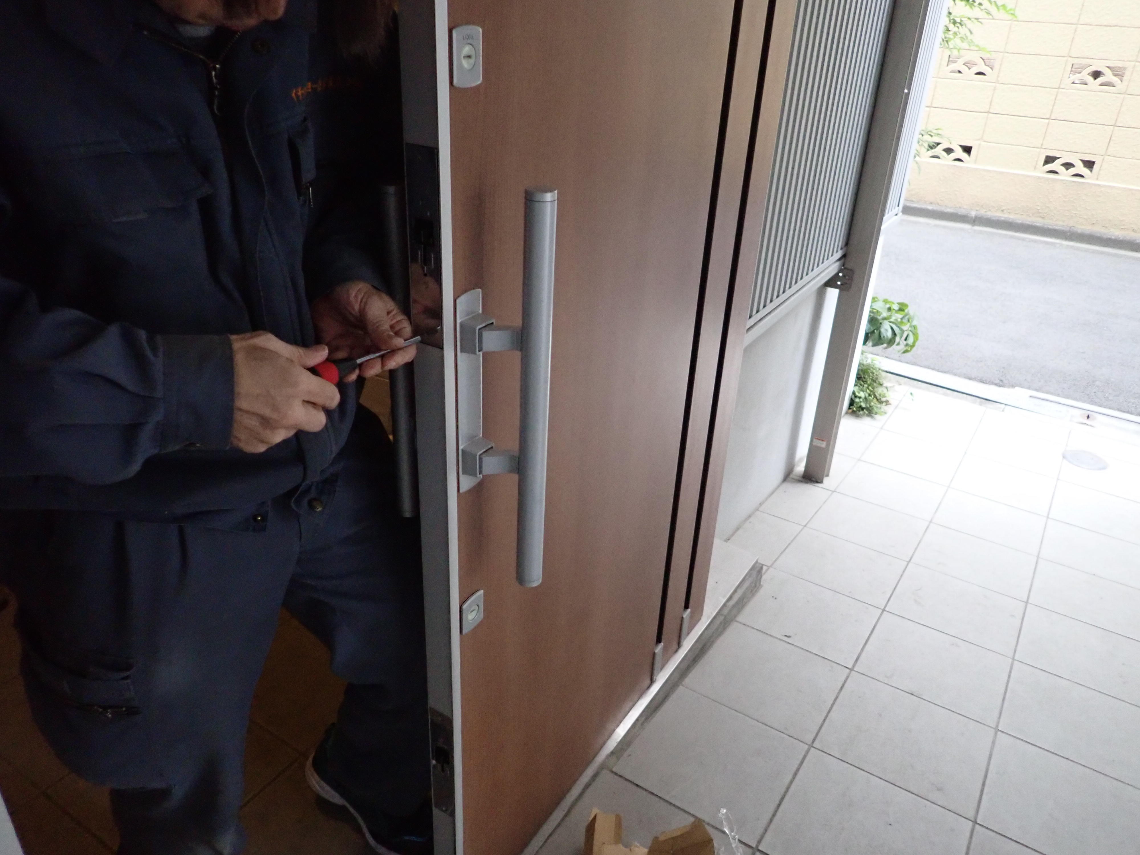足立区千住緑町の現場見学会に来場していただいたお客様の現場で、 網戸交換と玄関ドアの鍵を交換させていただきました。