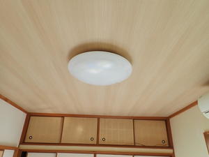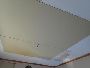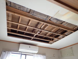 雨漏りしてしまった部屋の天井はボードを交換させていただき、天井と壁のビニルクロスを張り替えさせていただきました。