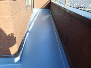 雨漏りしてしまった部屋の天井はボードを交換させていただき、天井と壁のビニルクロスを張り替えさせていただきました。ビニルクロスを張り替えたことにより部屋がきれいになったと奥さんが喜んでいました。防水工事の方は勾配がしっかりとれて水が溜まらなくなり、雨漏りも止まったので、ご主人が喜んでいました。